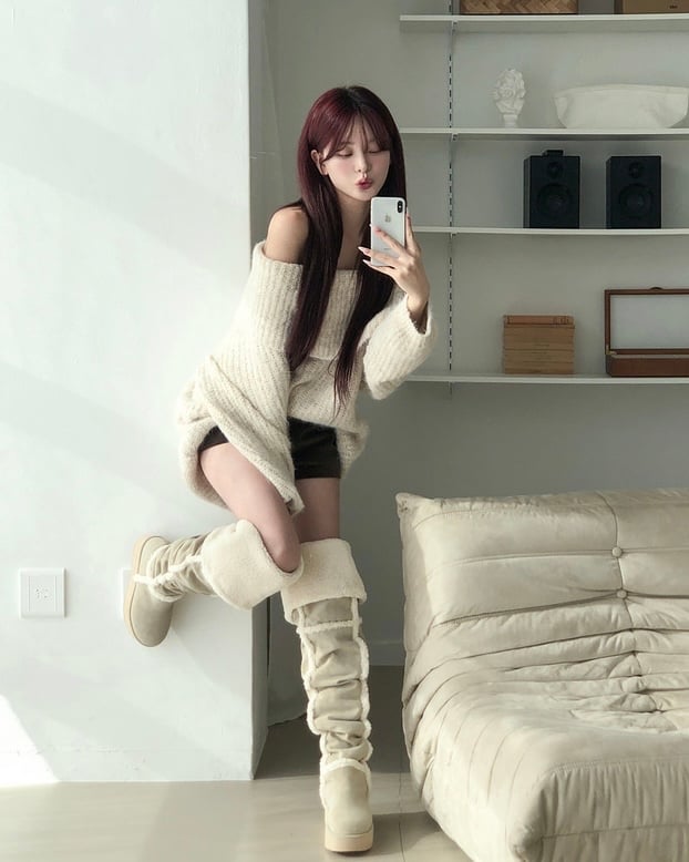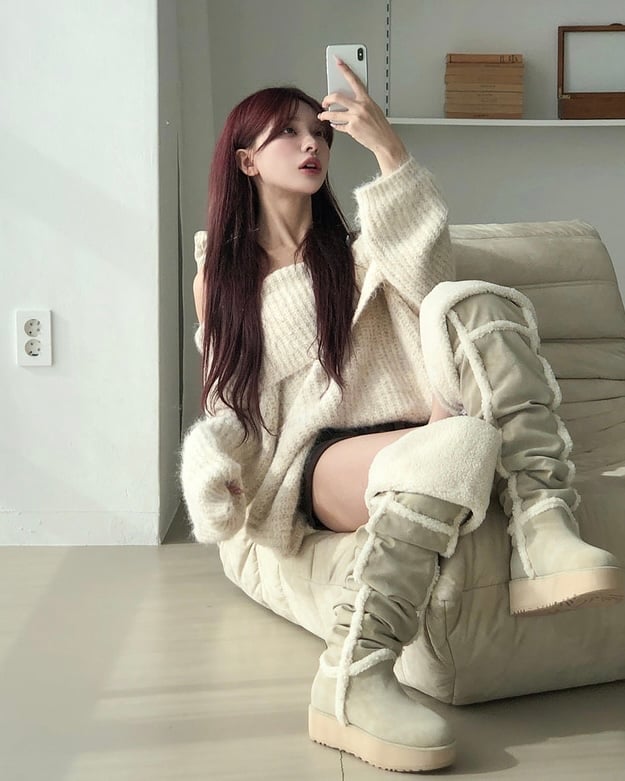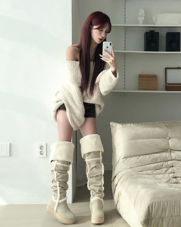 Over-the-Knee Slouchy Shearling Boots