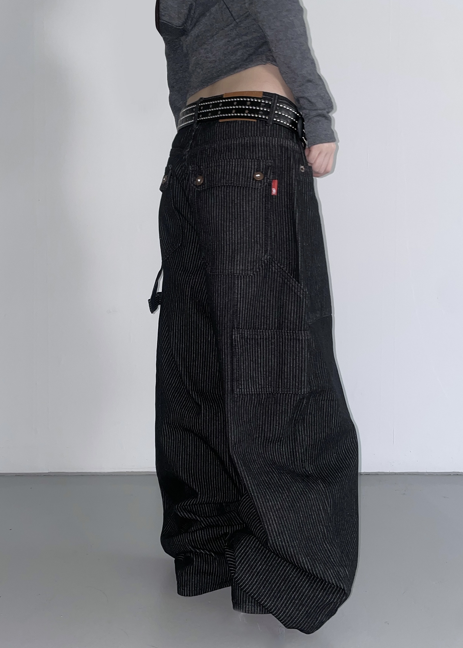 Mega Wide Stripe Cargo Denim Pants