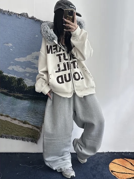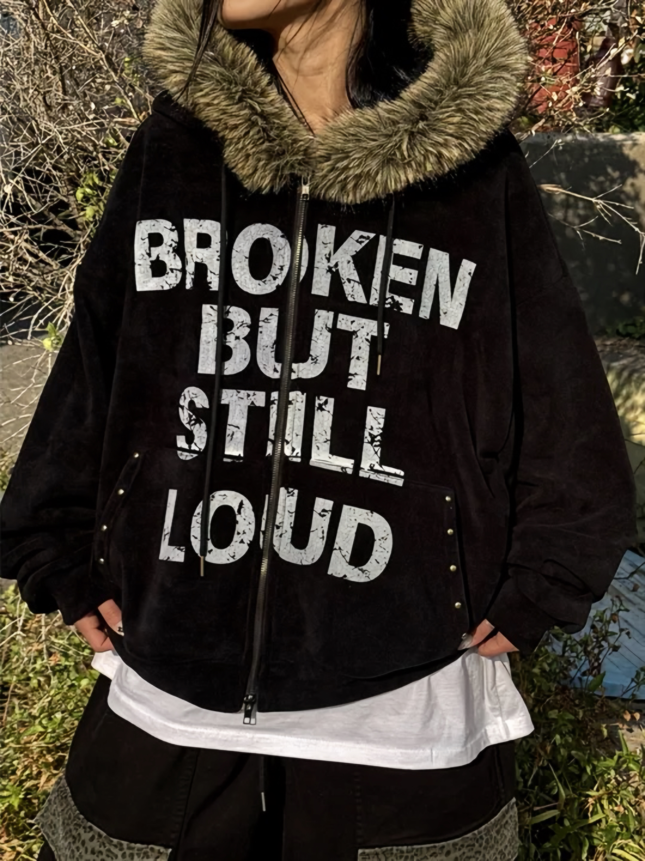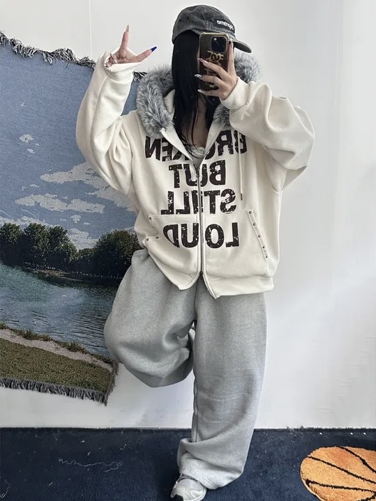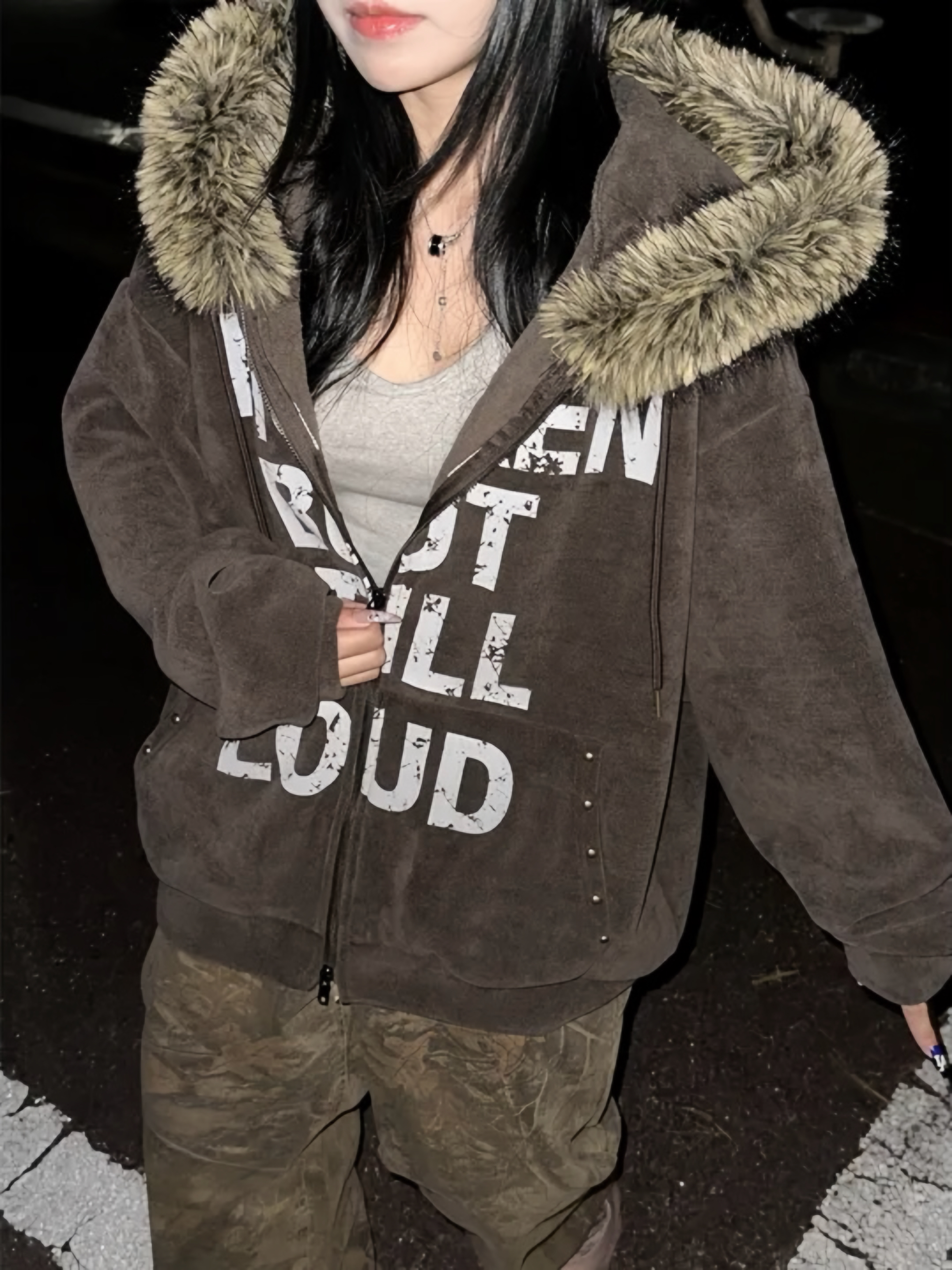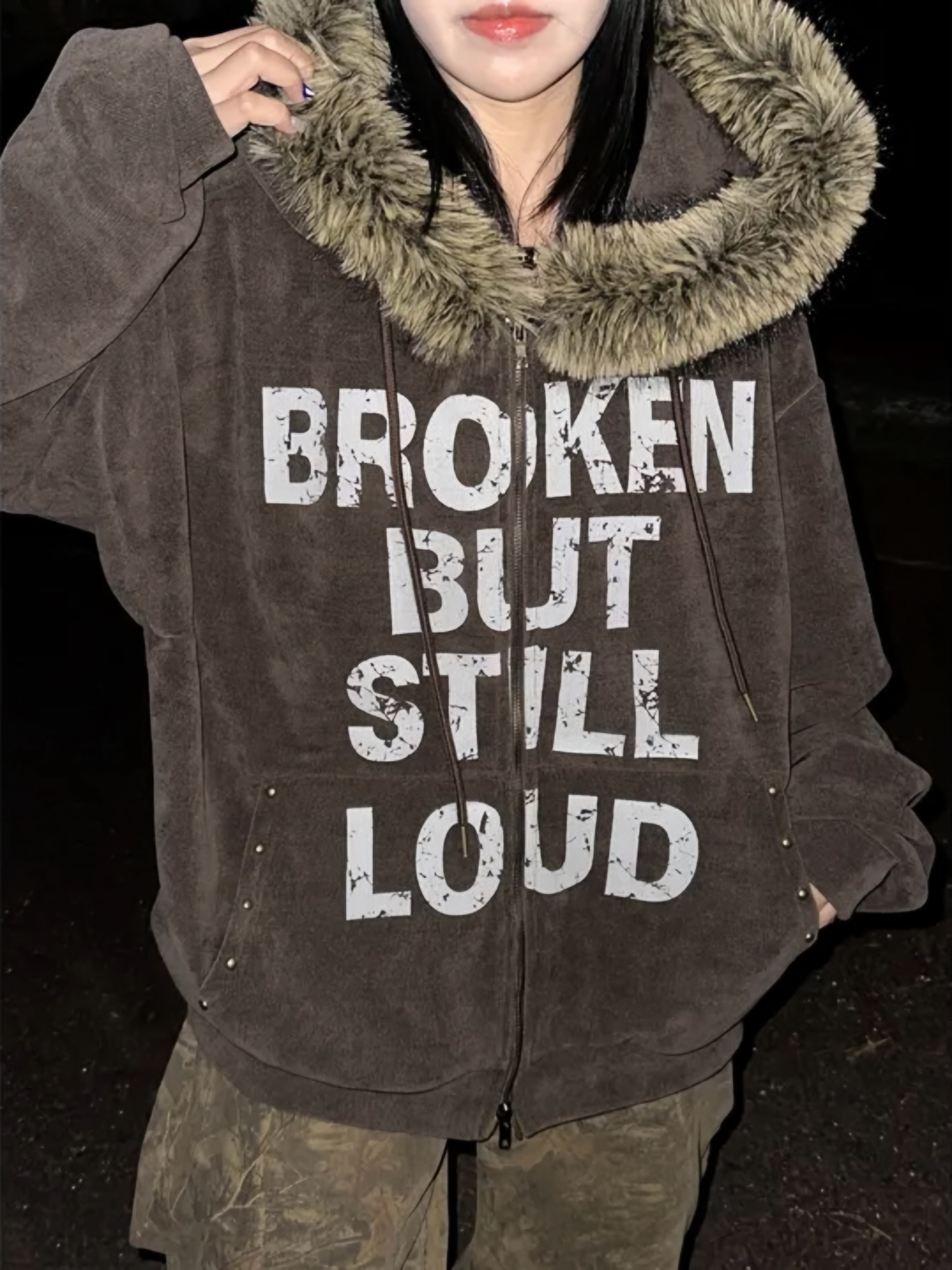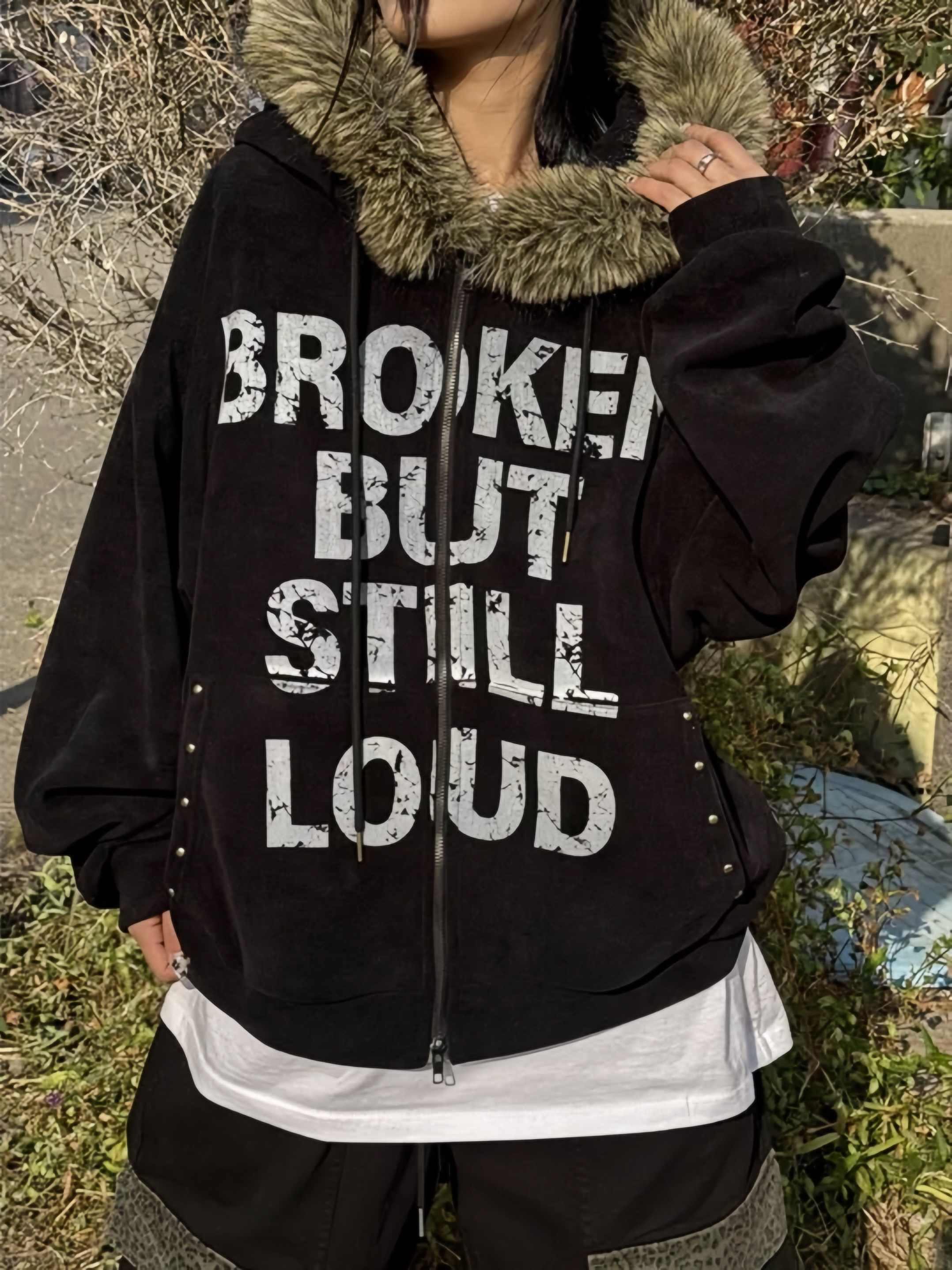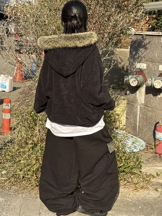 Corduroy Faux Fur Graphic Hoodie