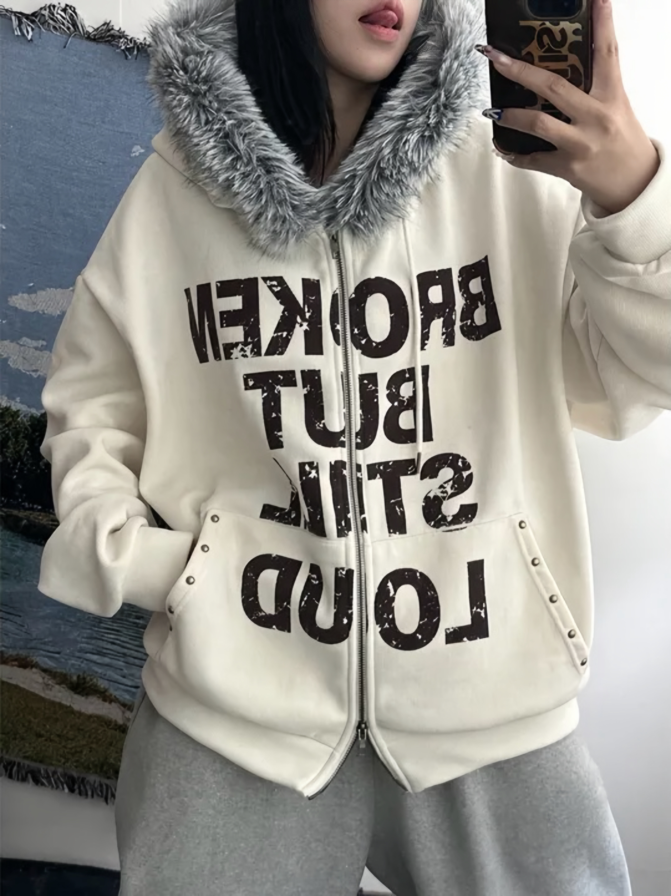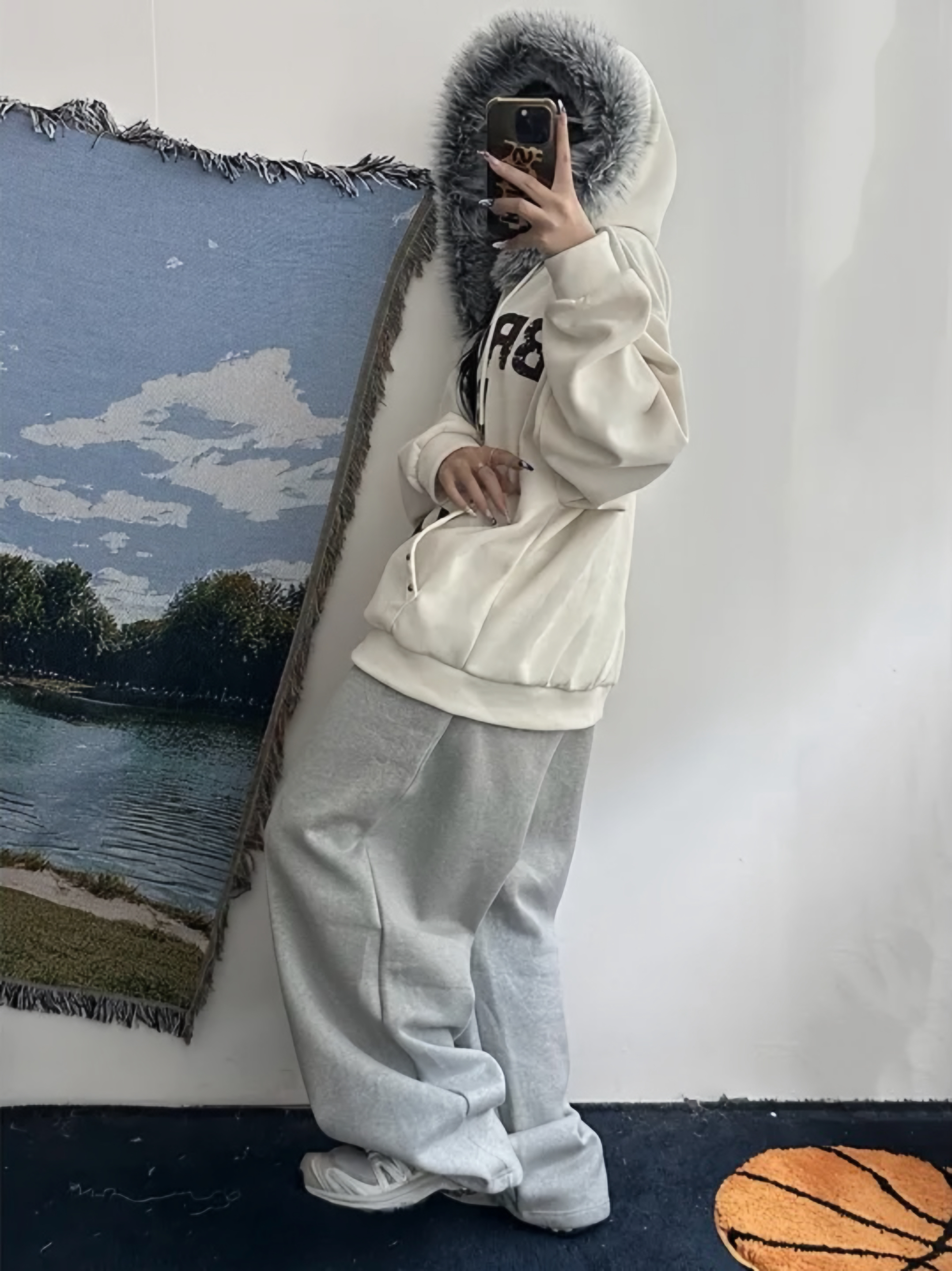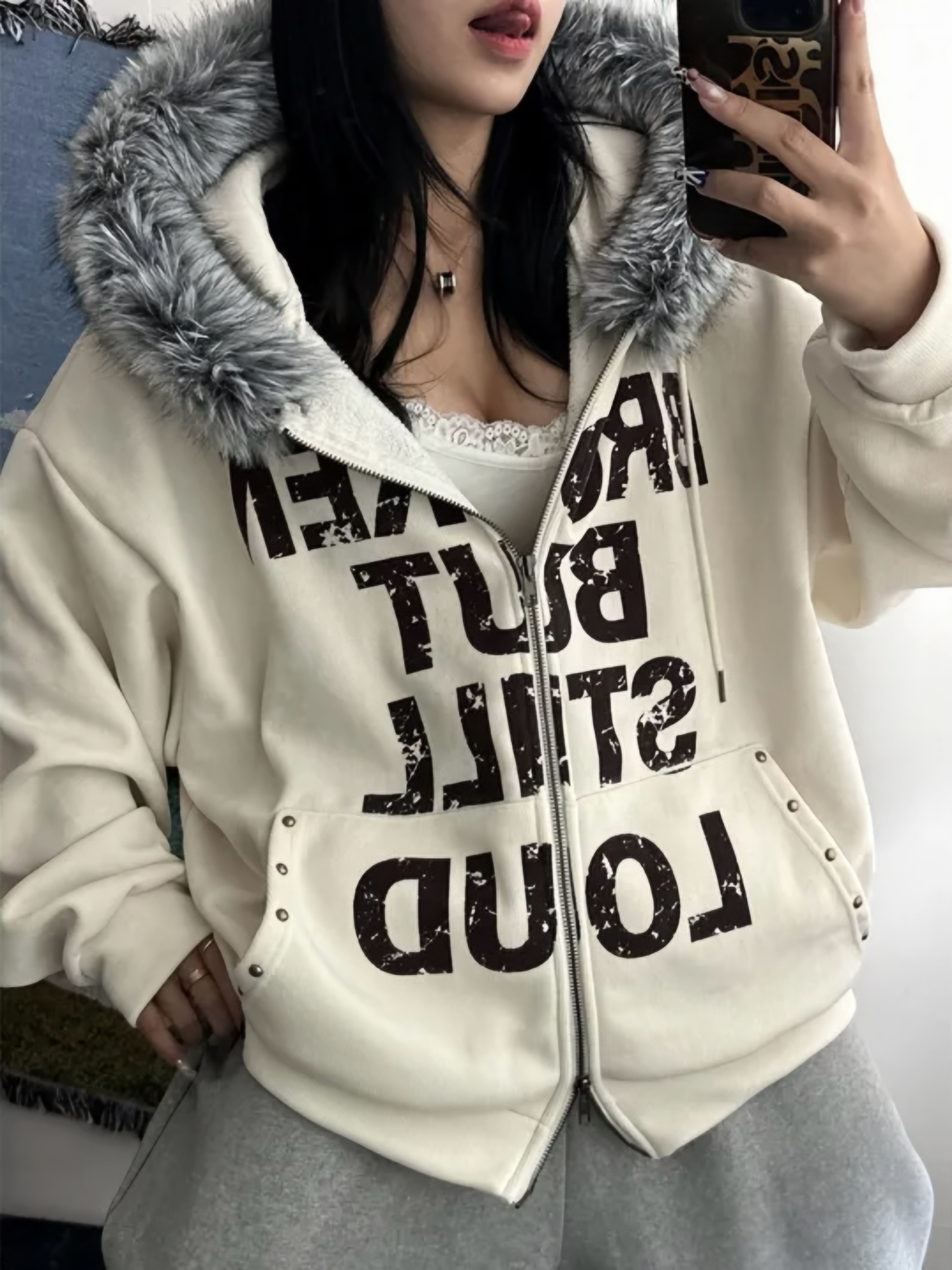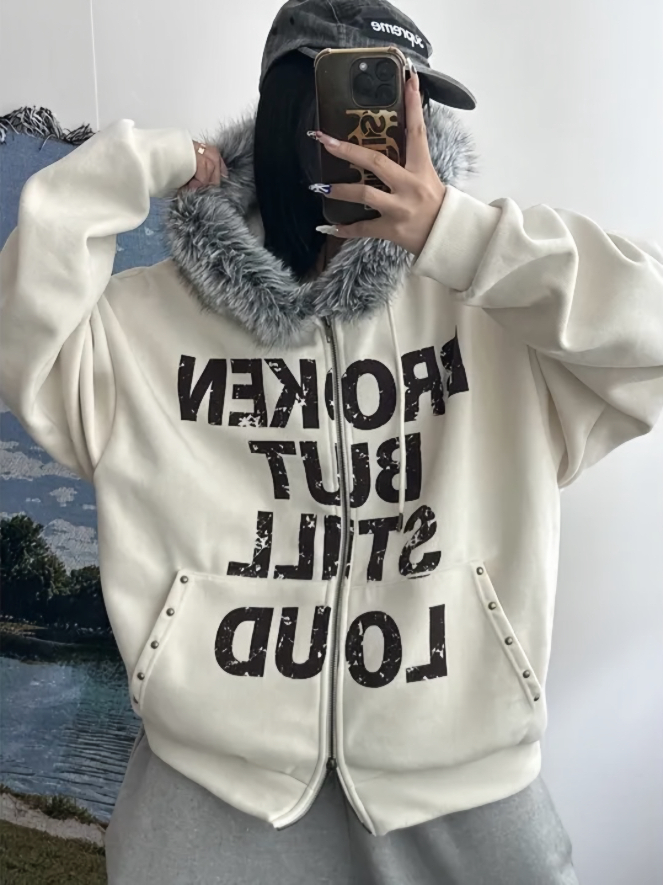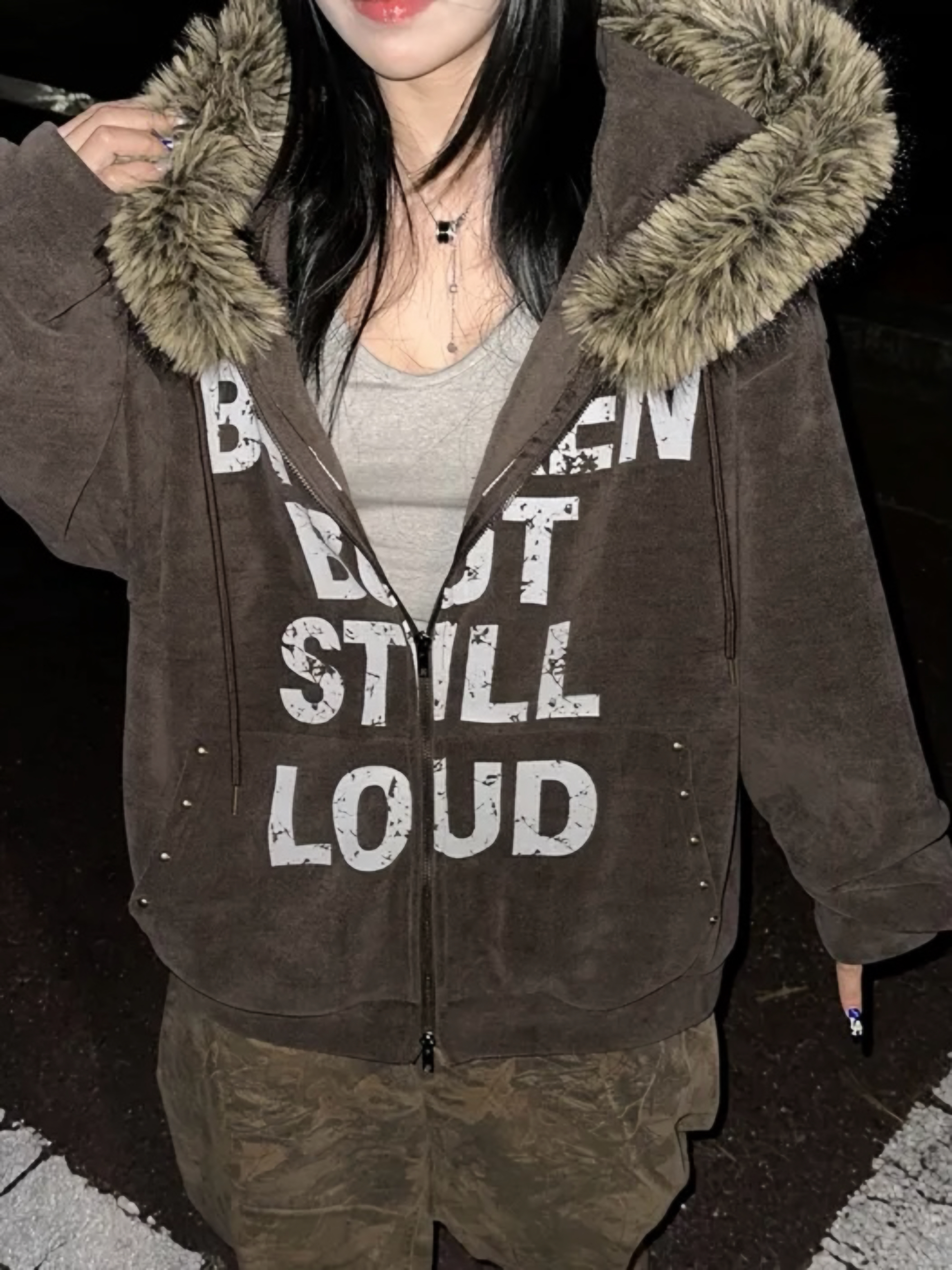 Corduroy Faux Fur Graphic Hoodie