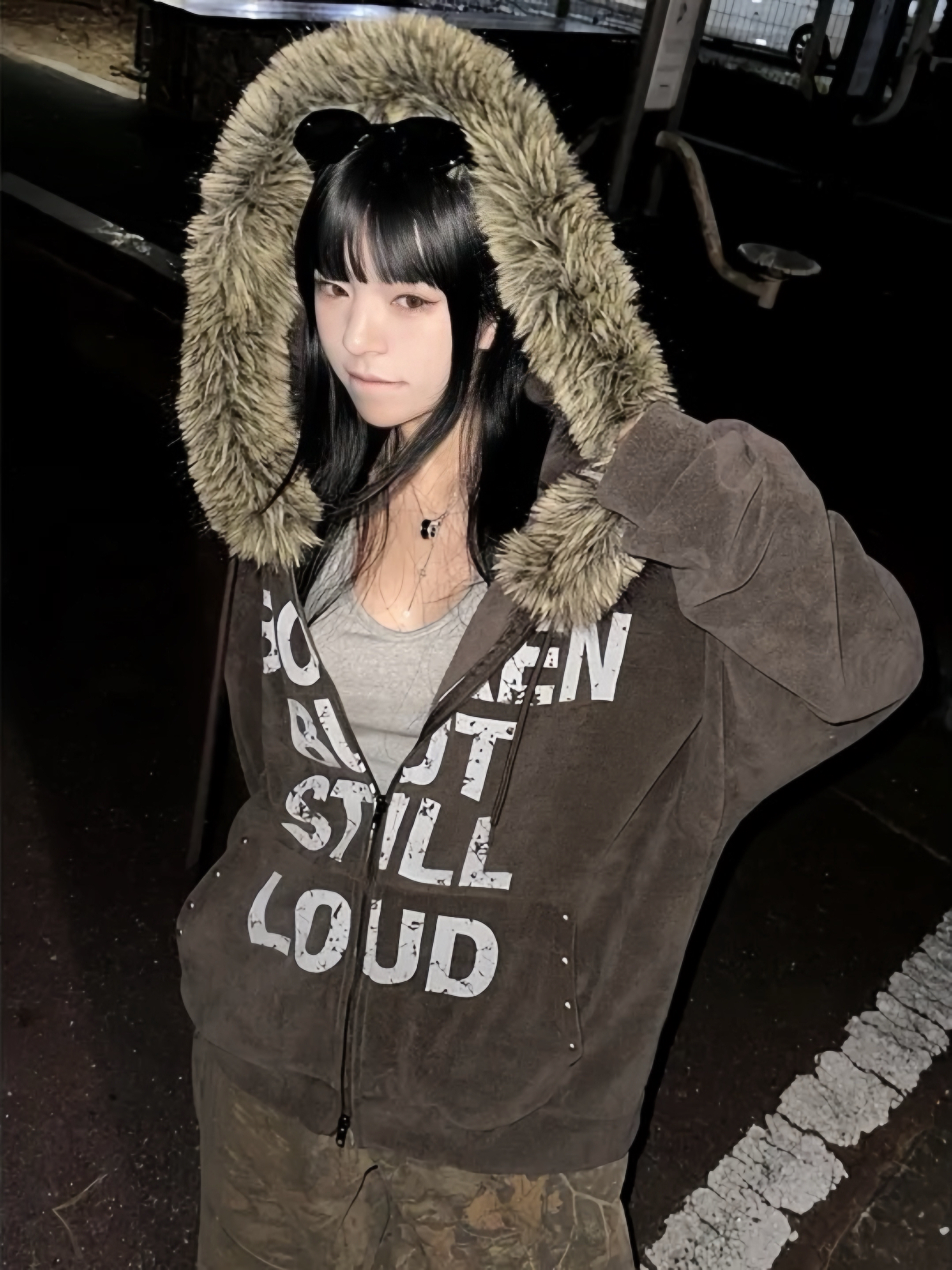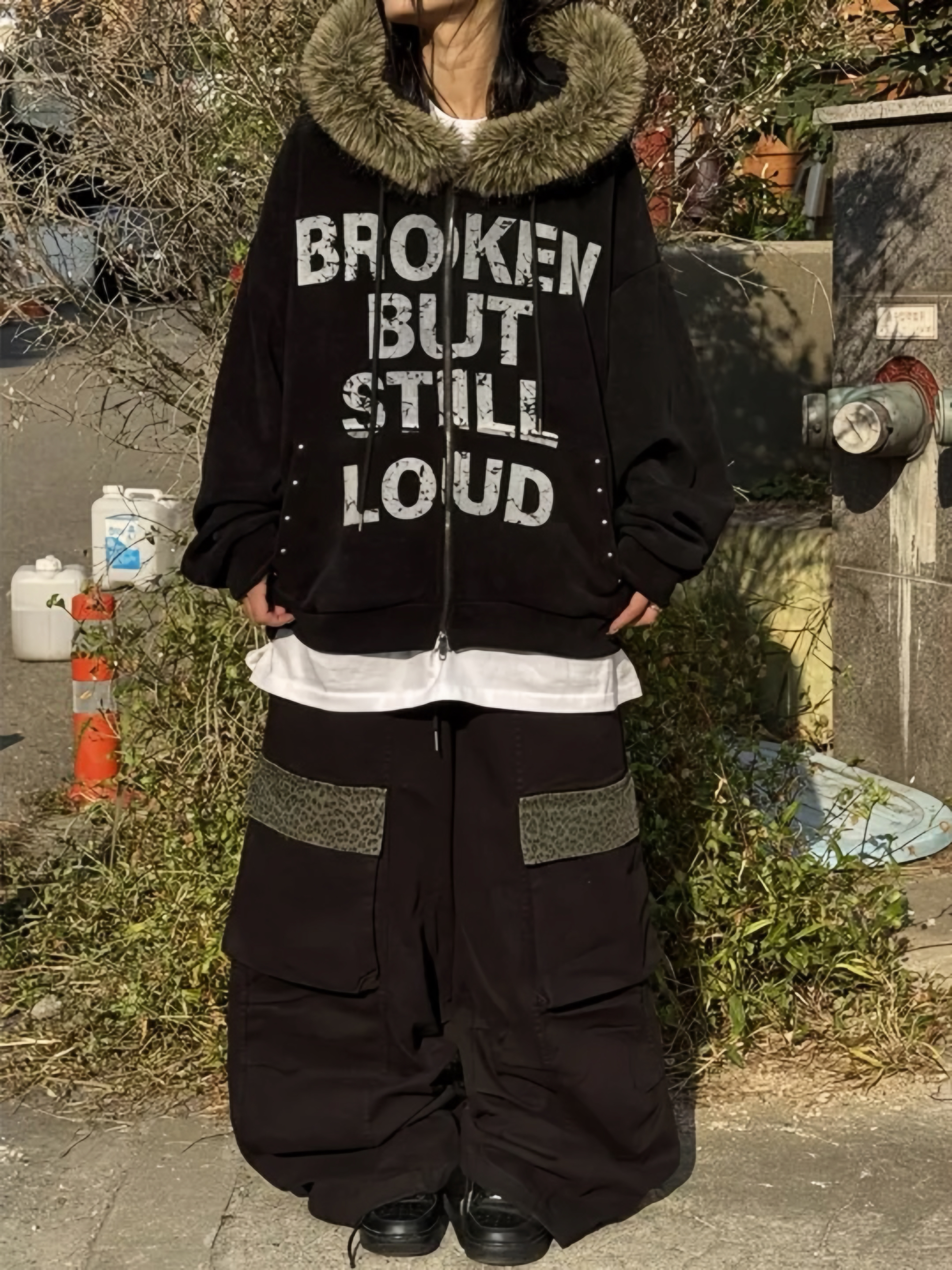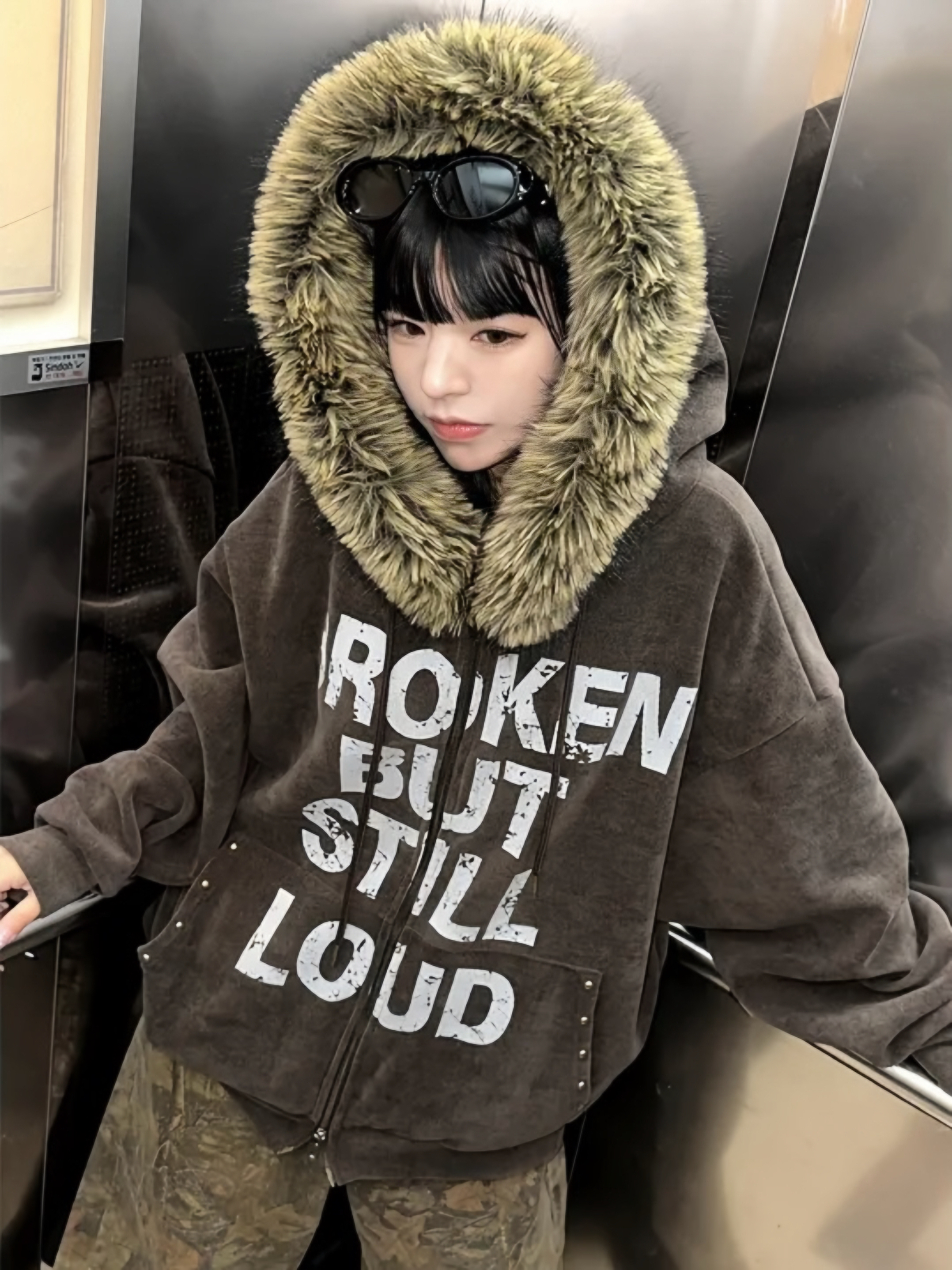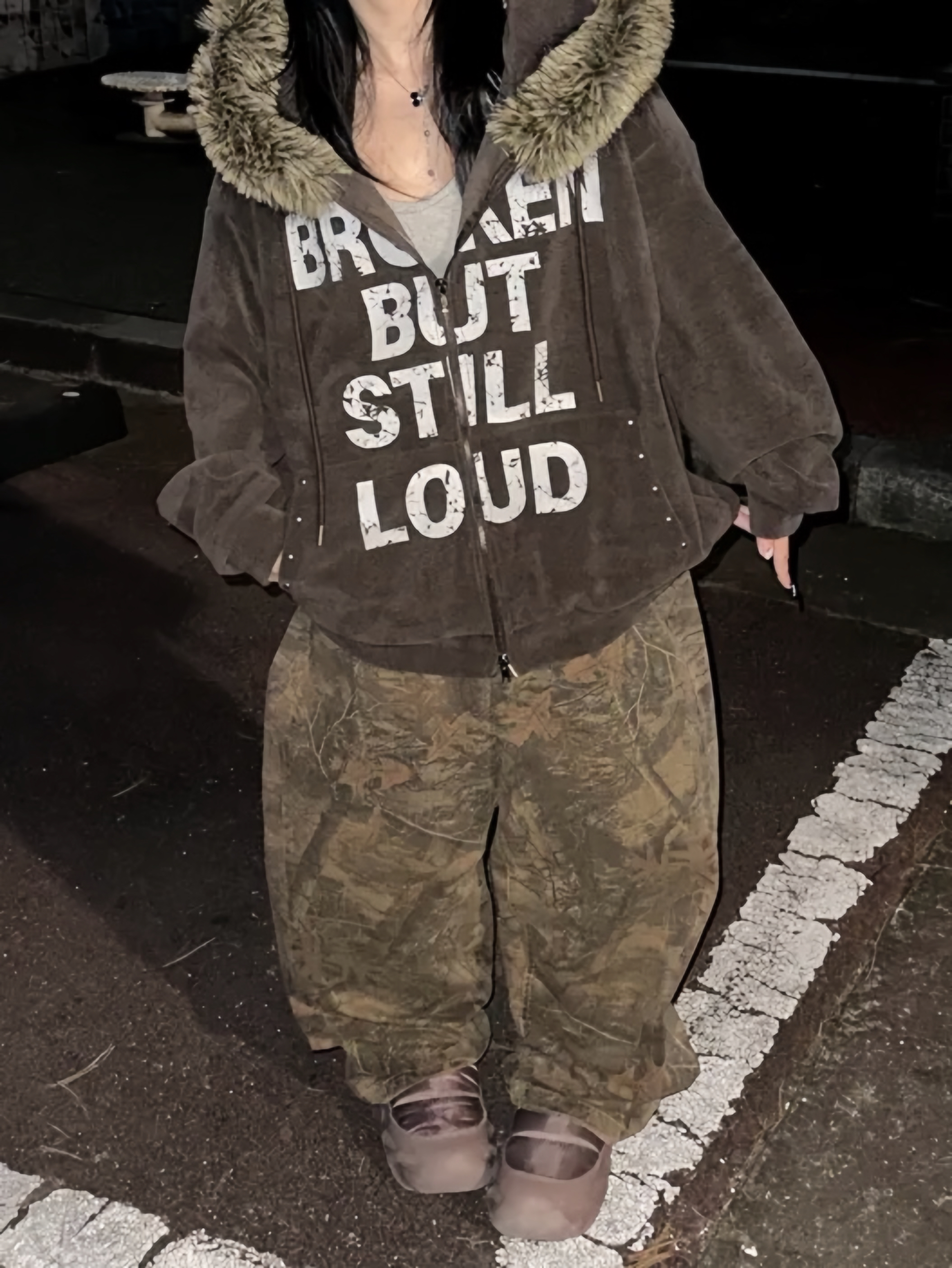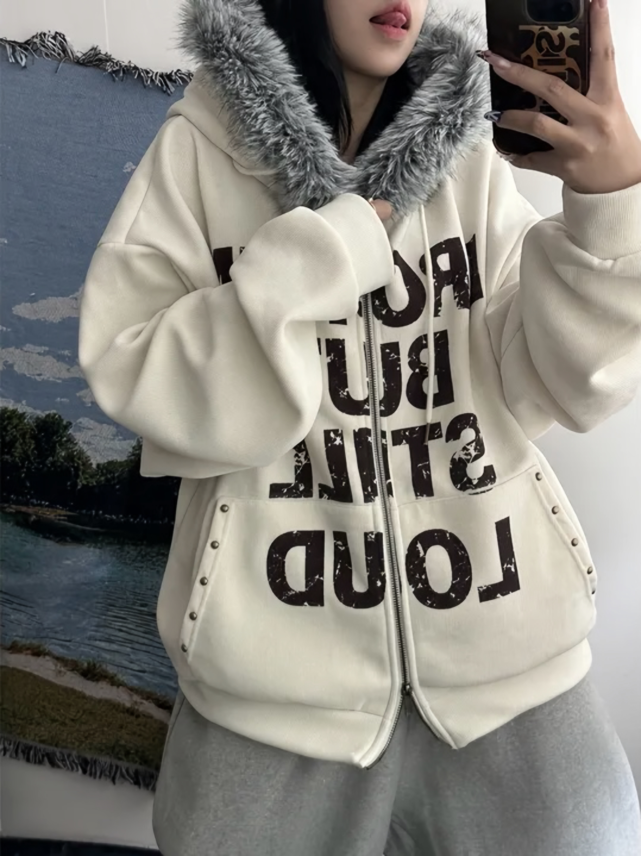 Corduroy Faux Fur Graphic Hoodie