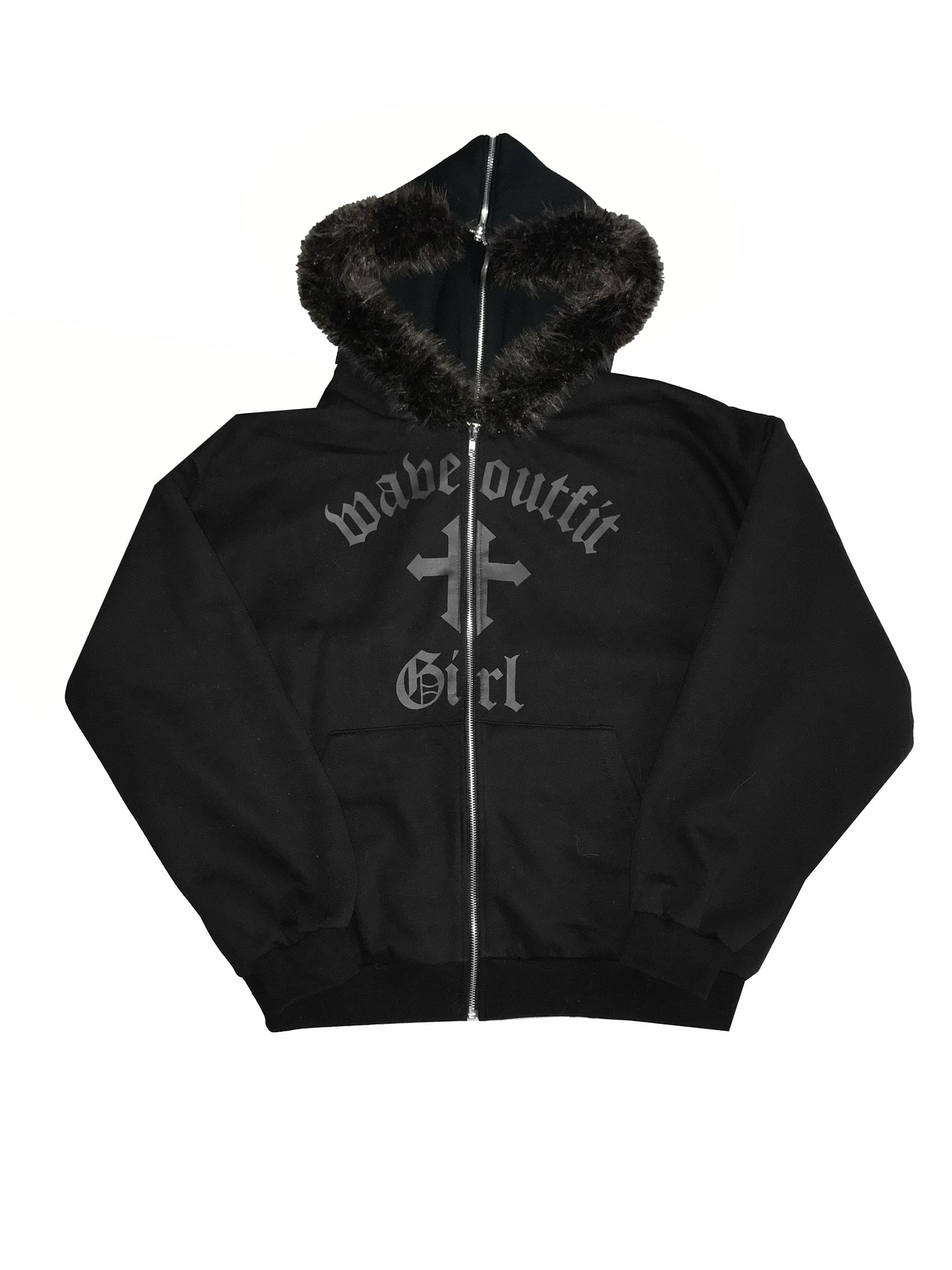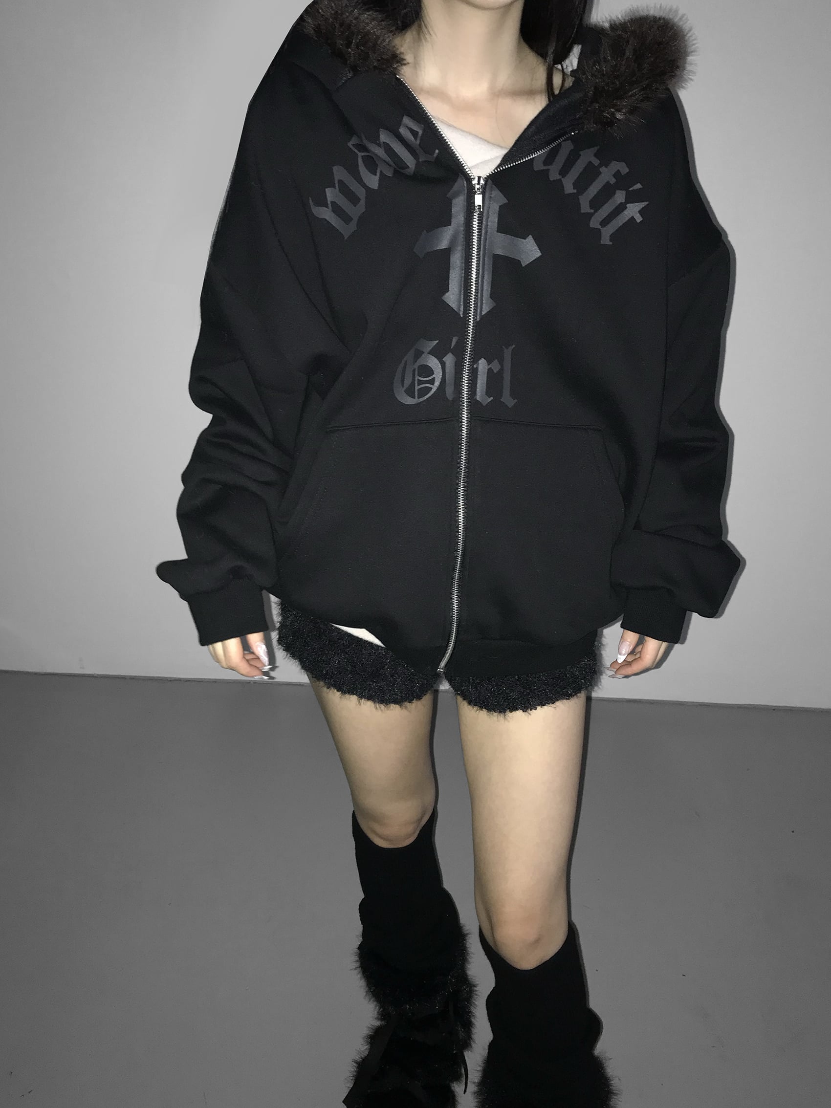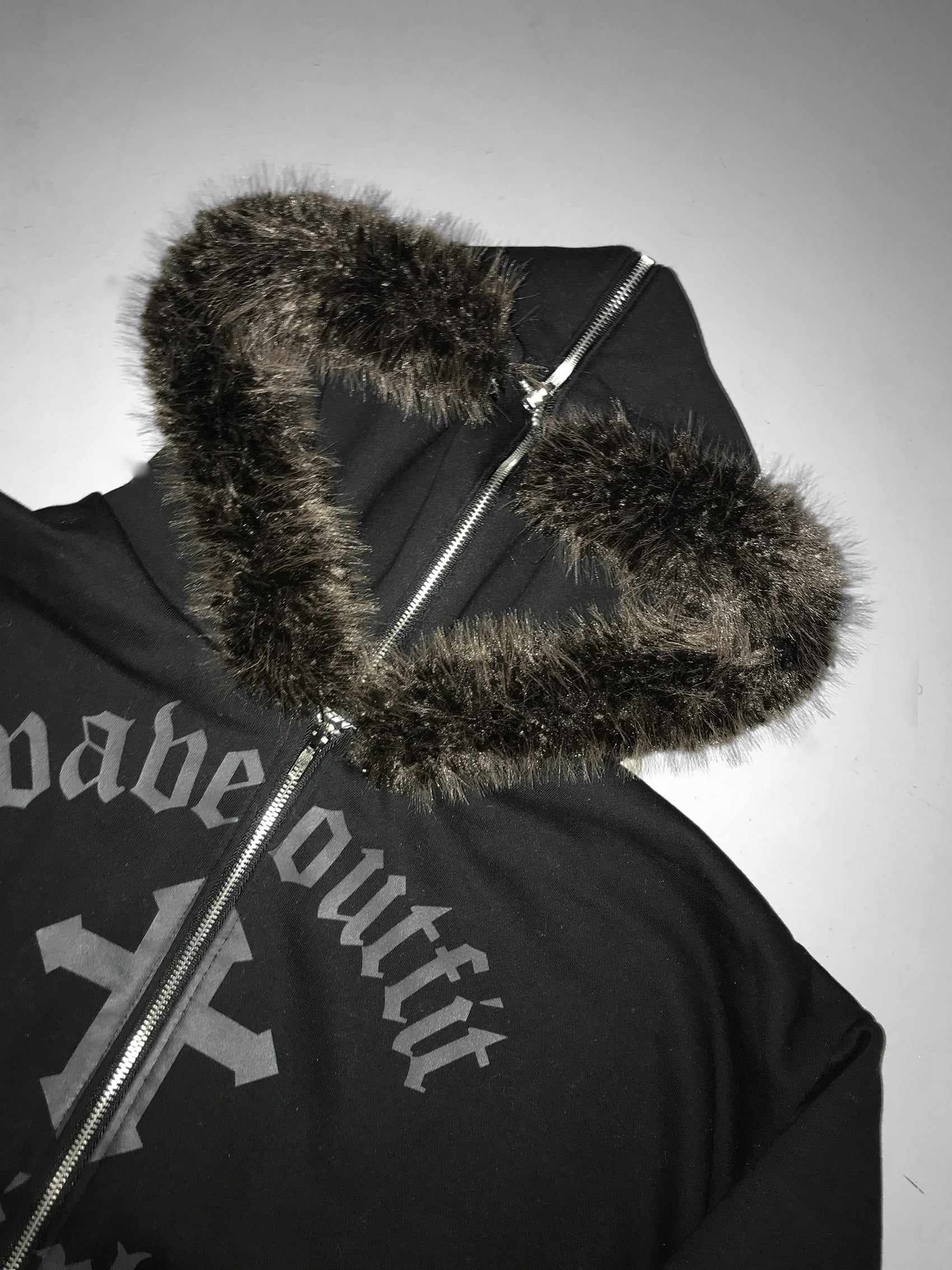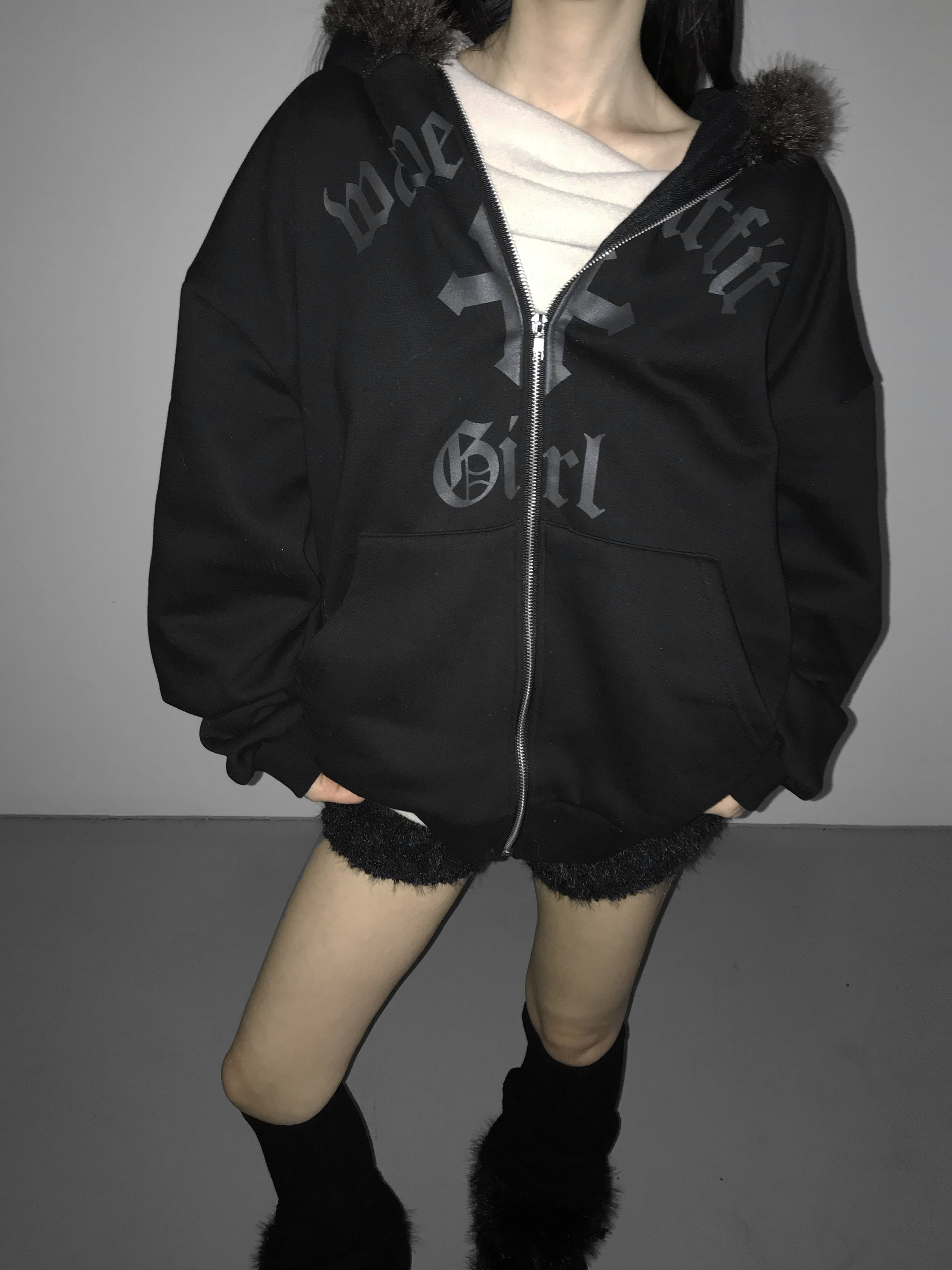 Gothic Faux Fur Zip Hoodie