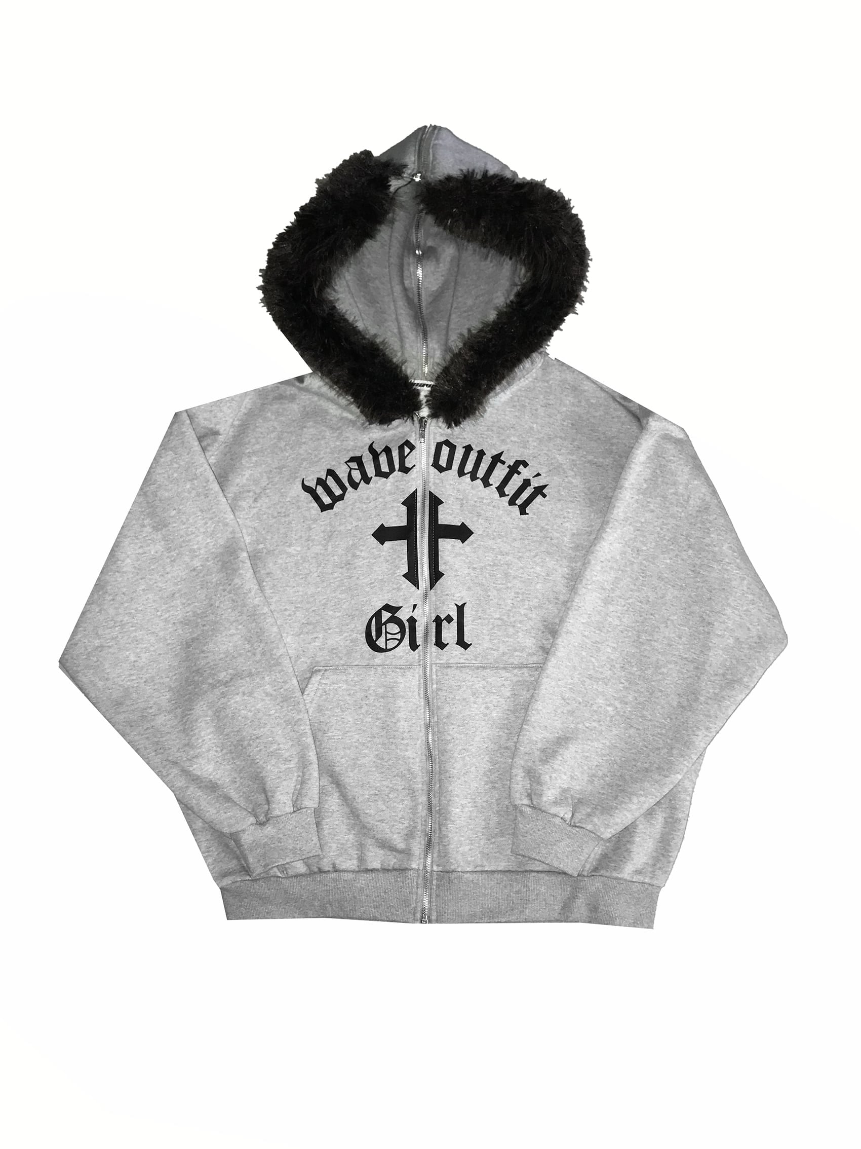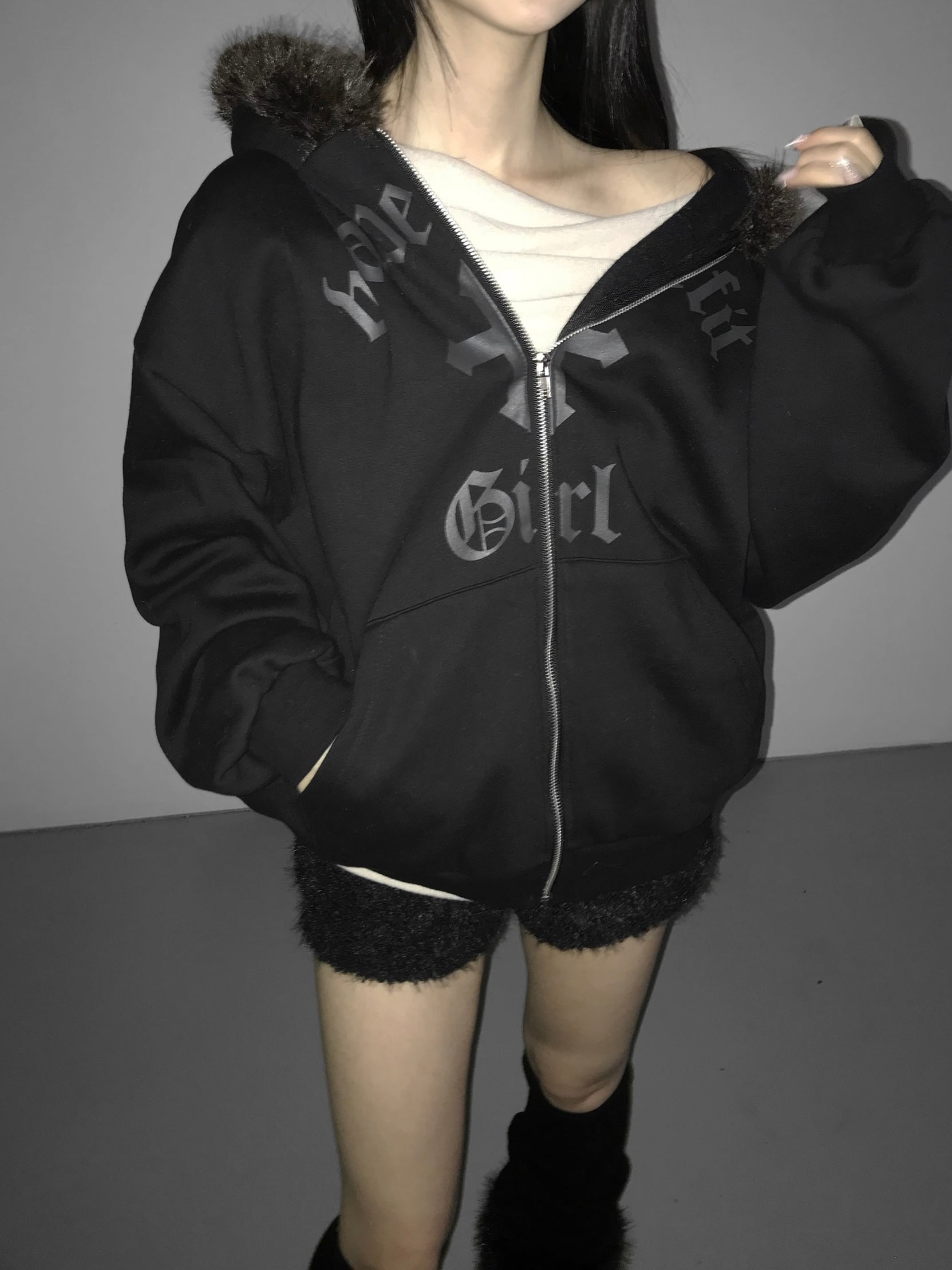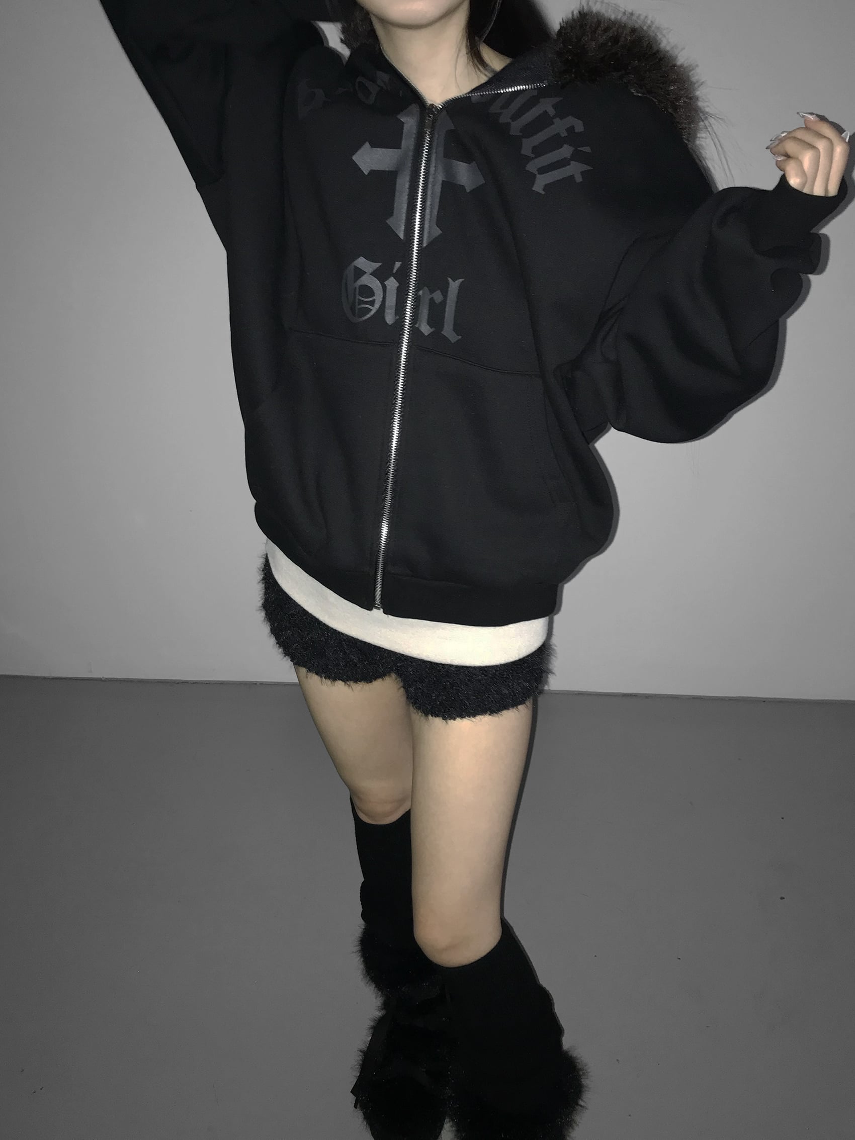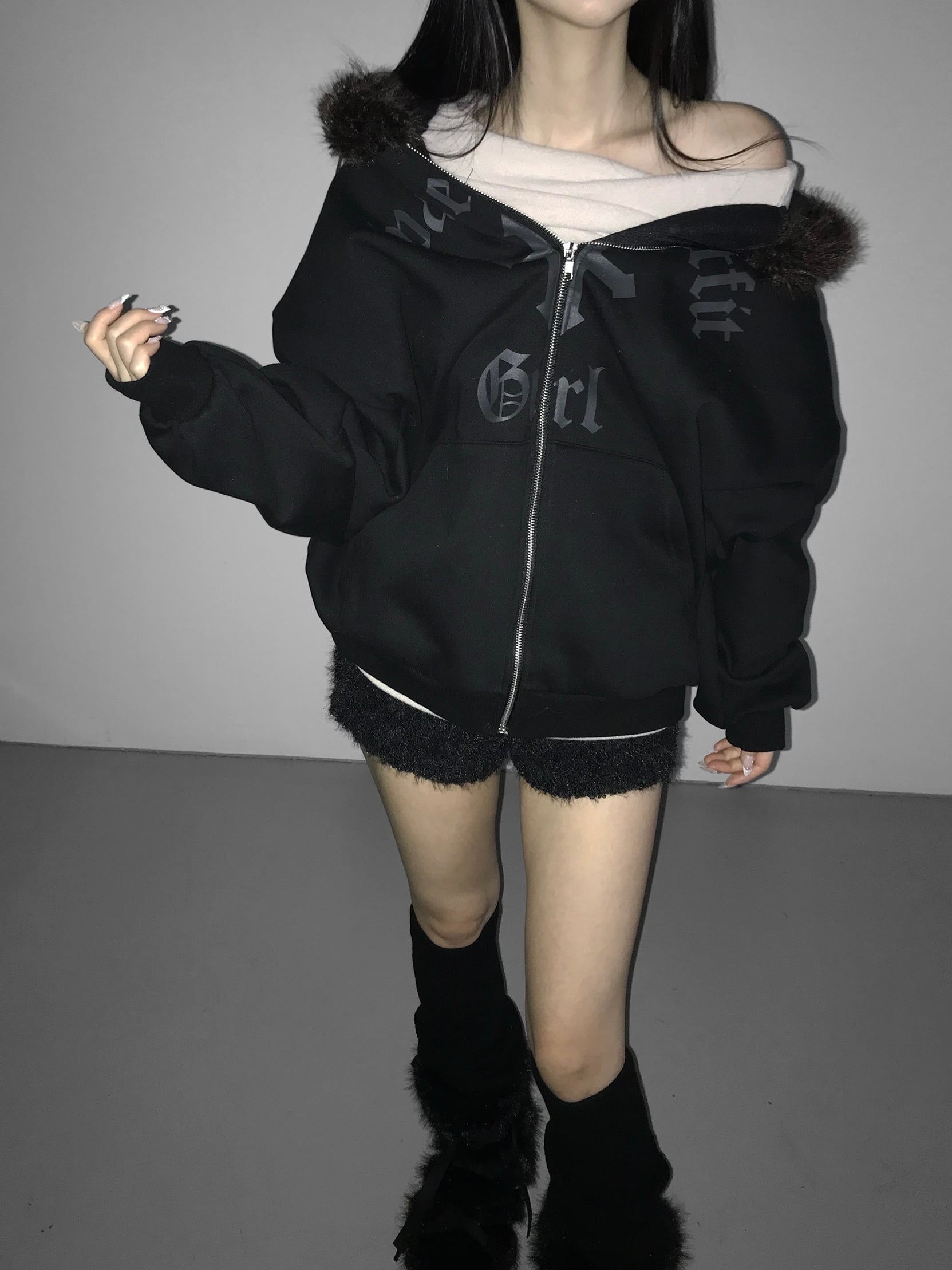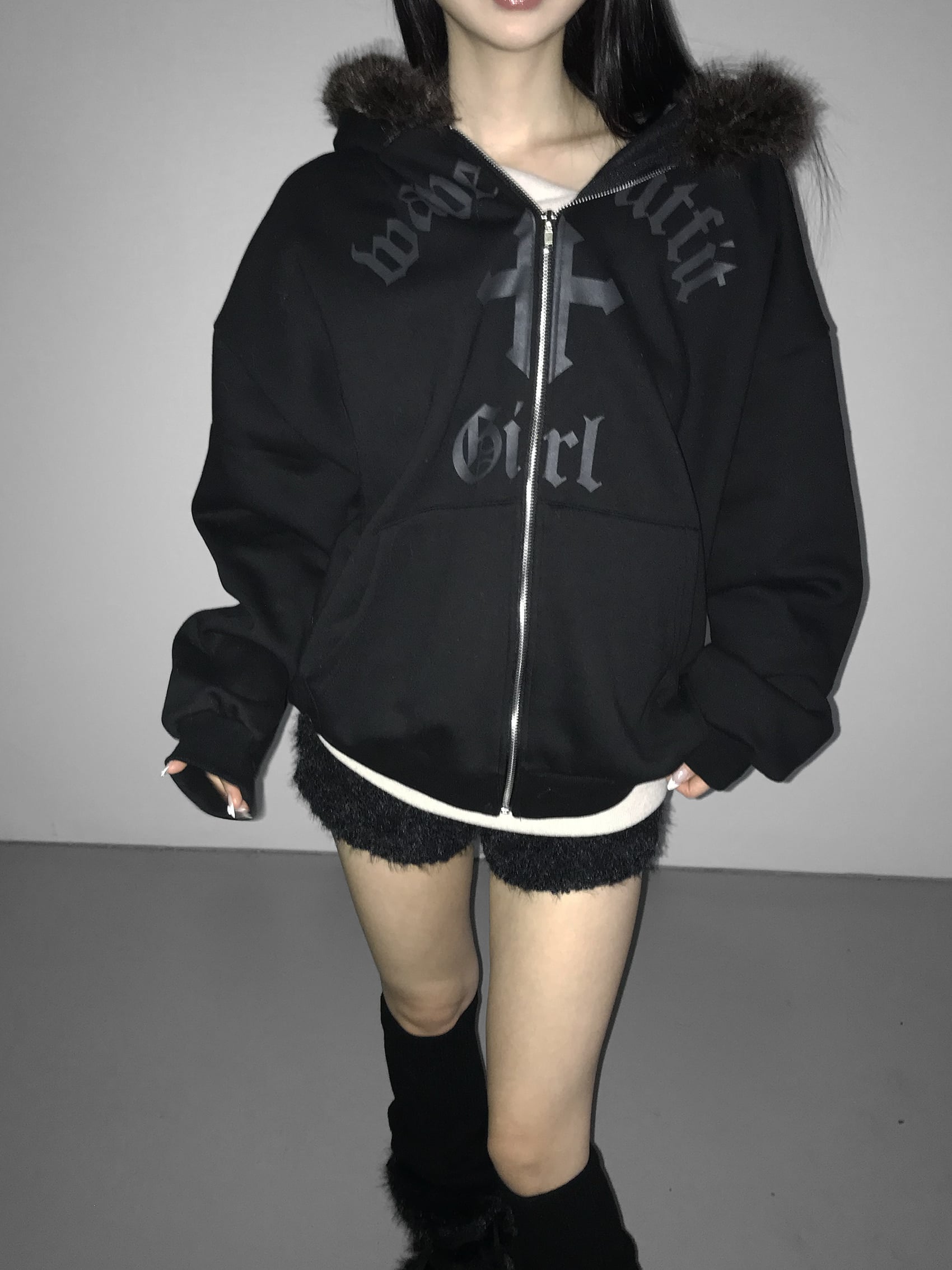 Gothic Faux Fur Zip Hoodie