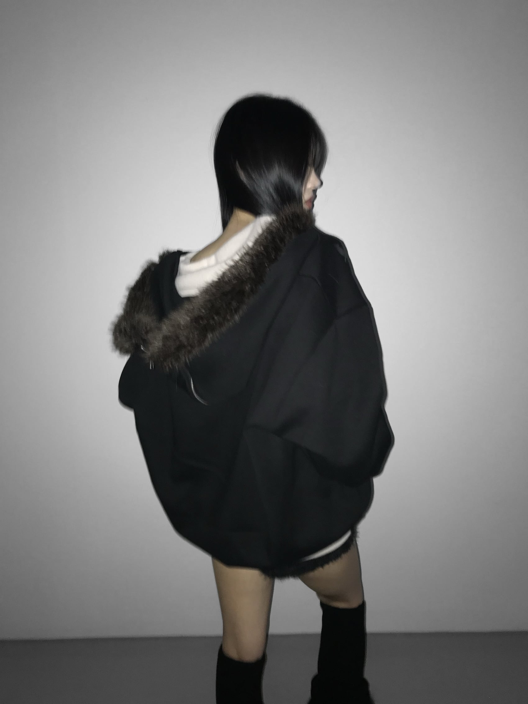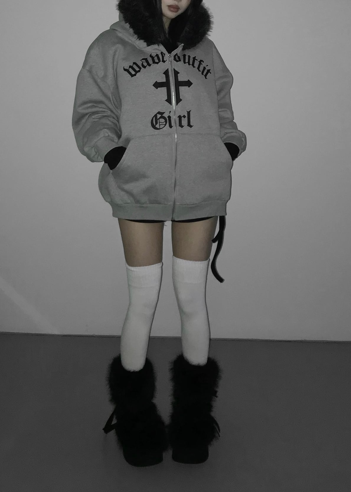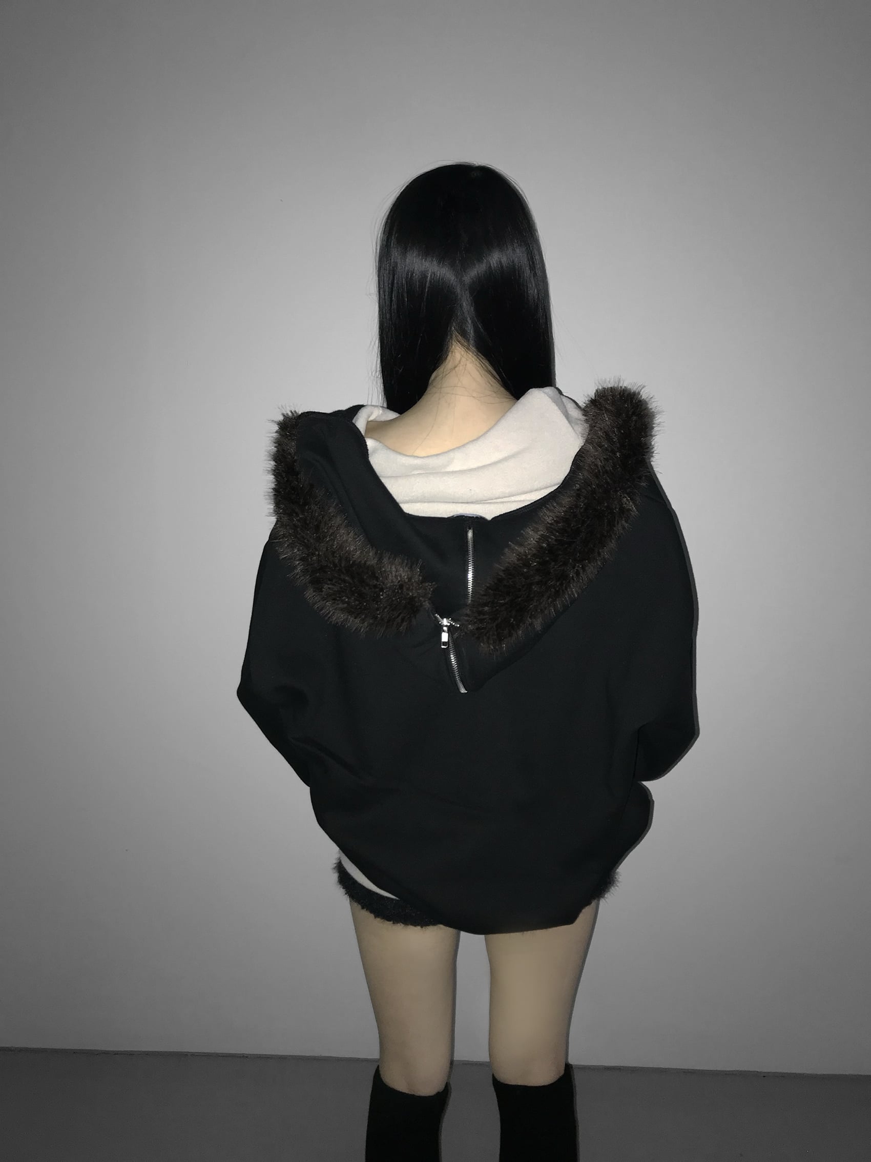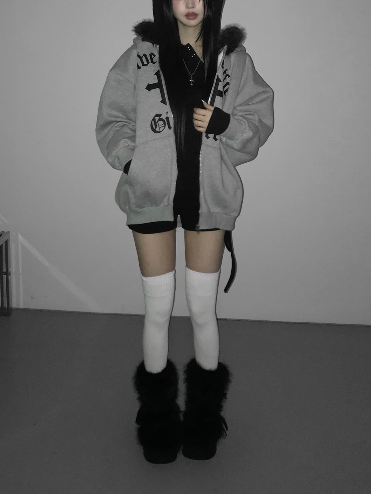 Gothic Faux Fur Zip Hoodie