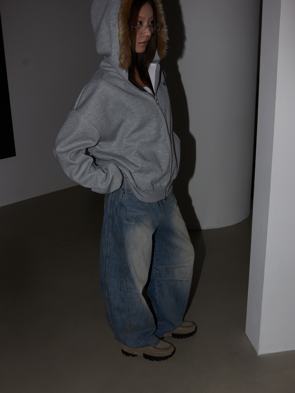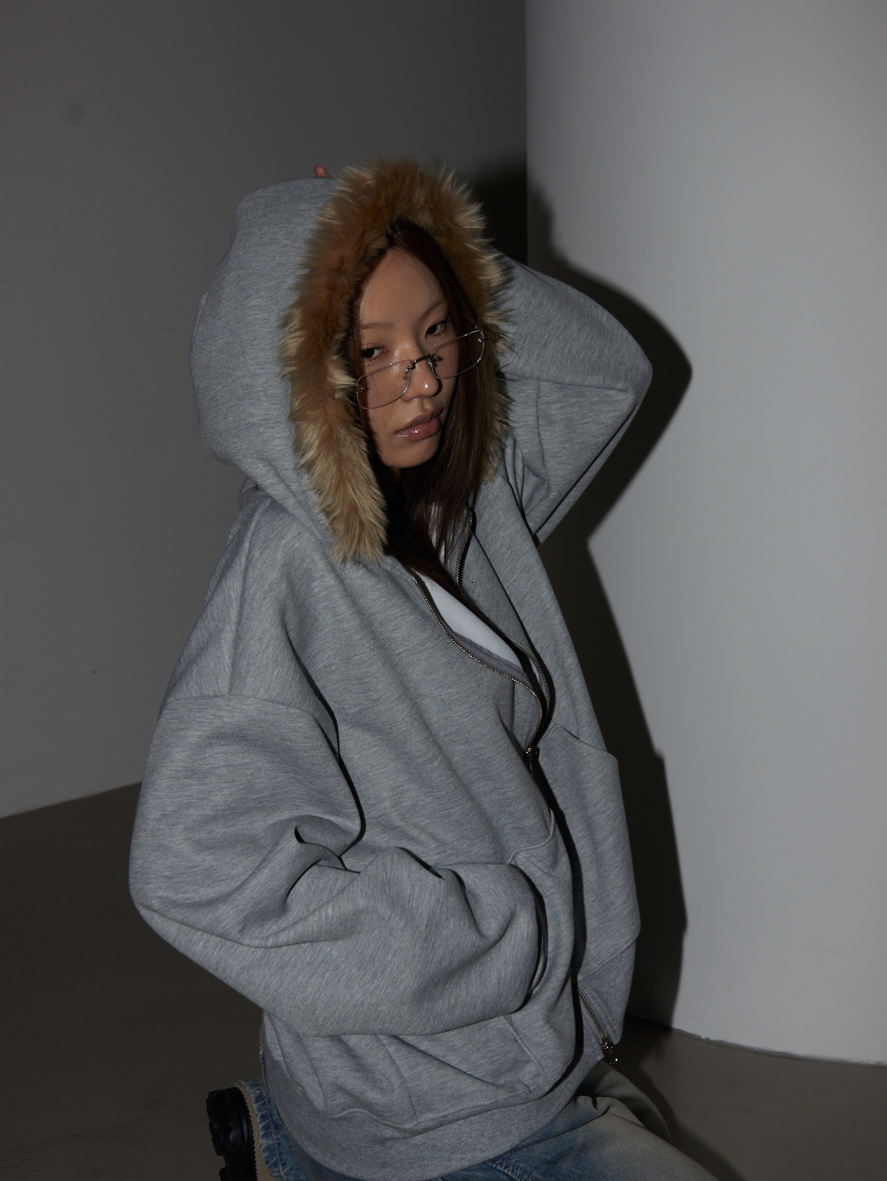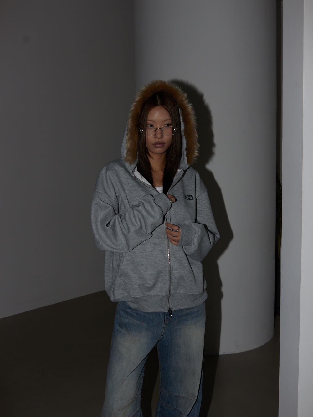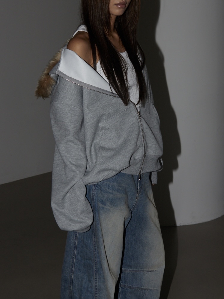 Loose Fit Hooded Zip-Up