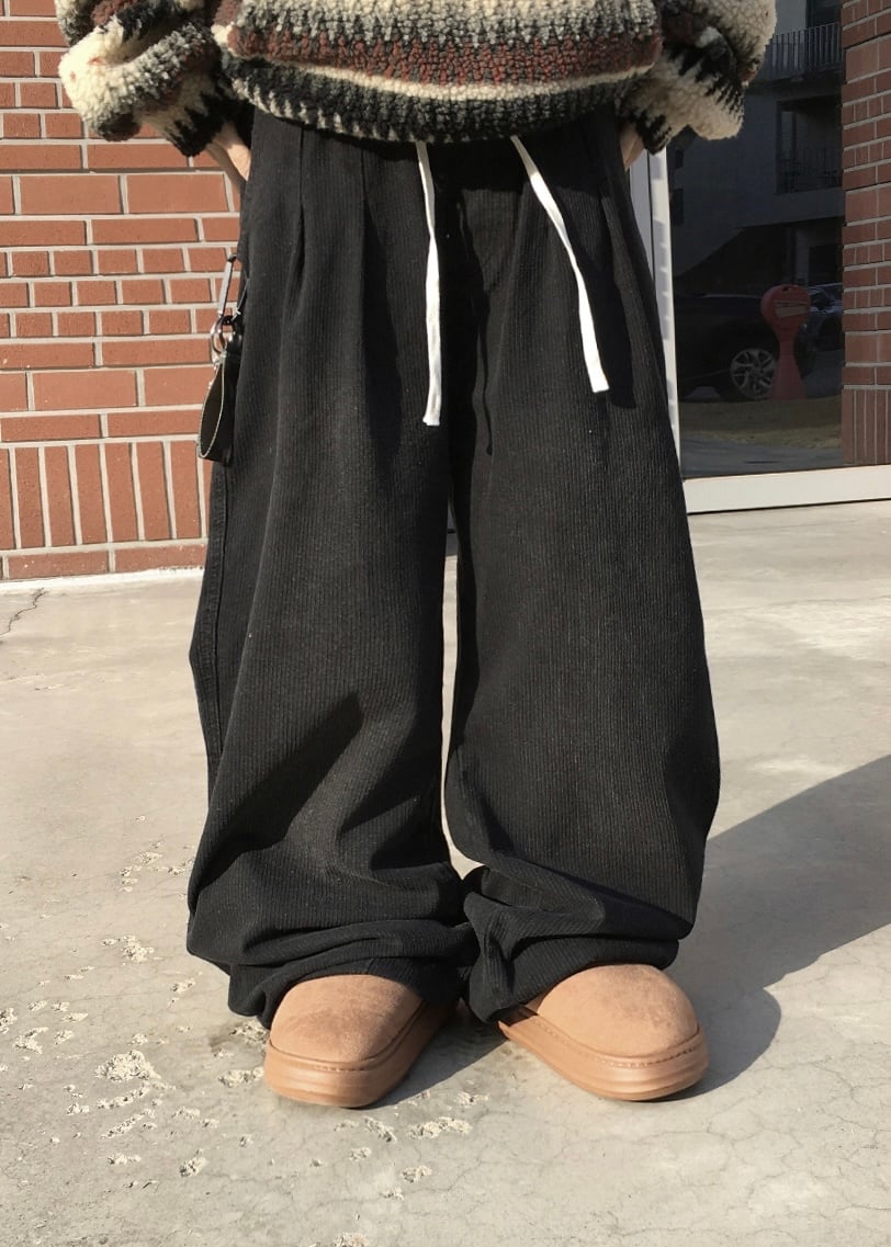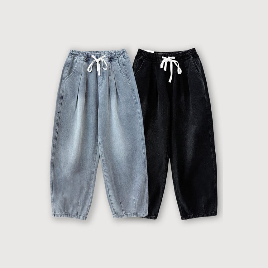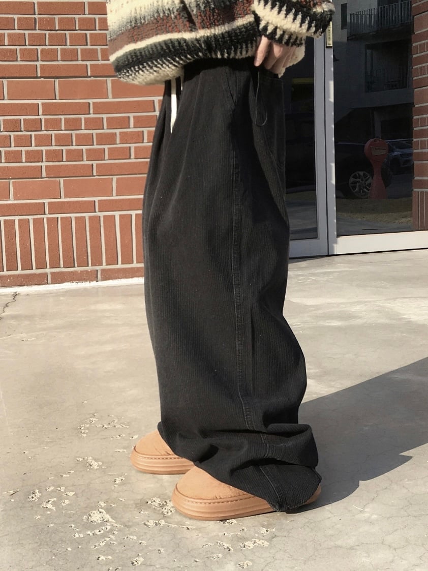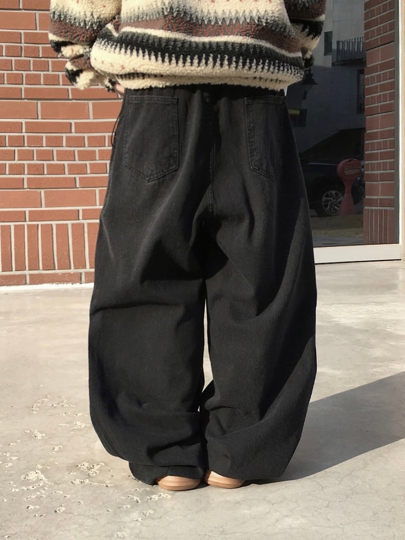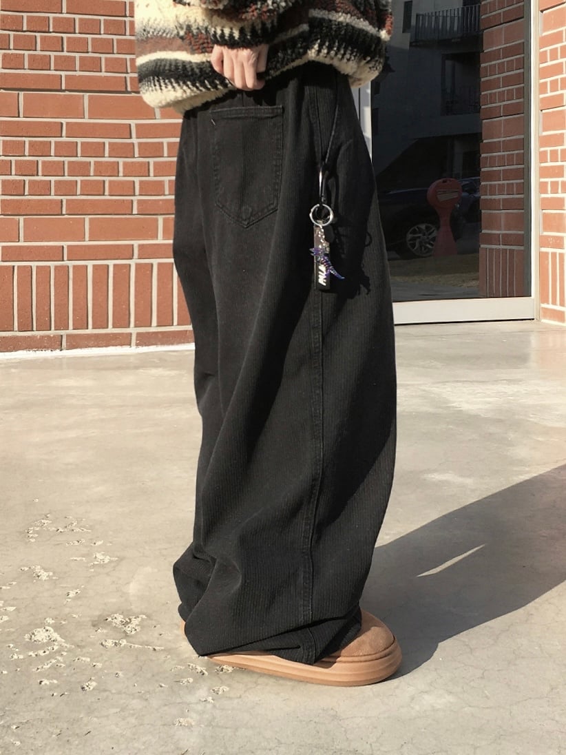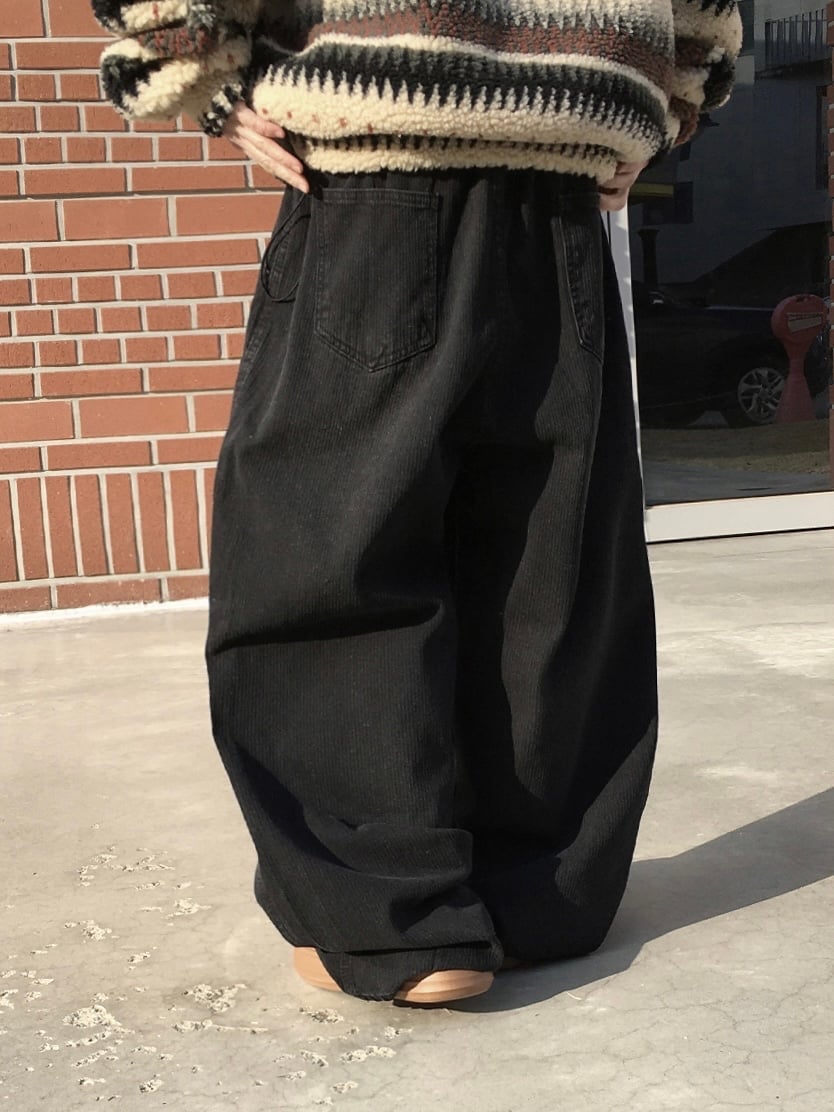 Pintuck Pants-Black Corduroy / Blue Denim(Unisex)