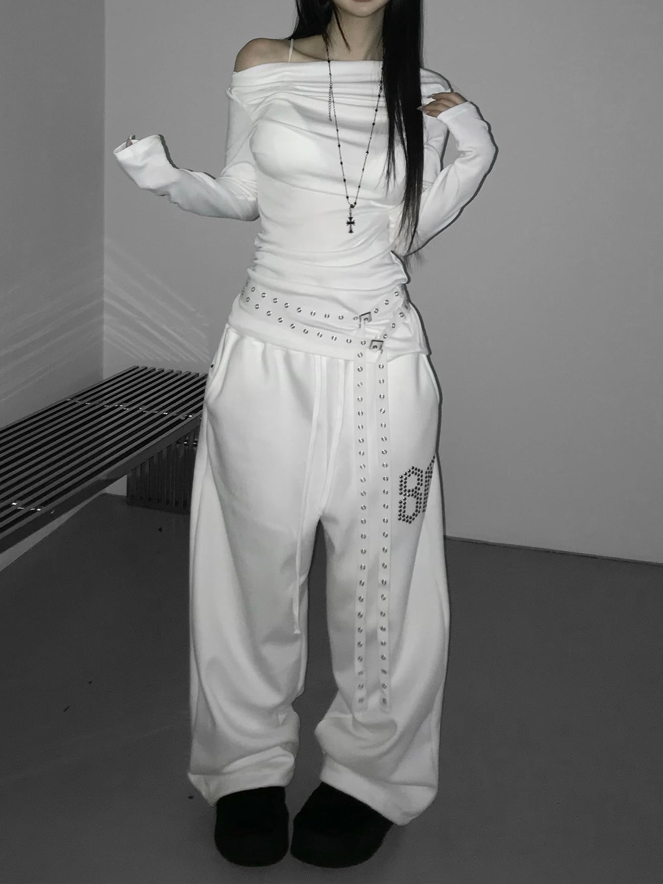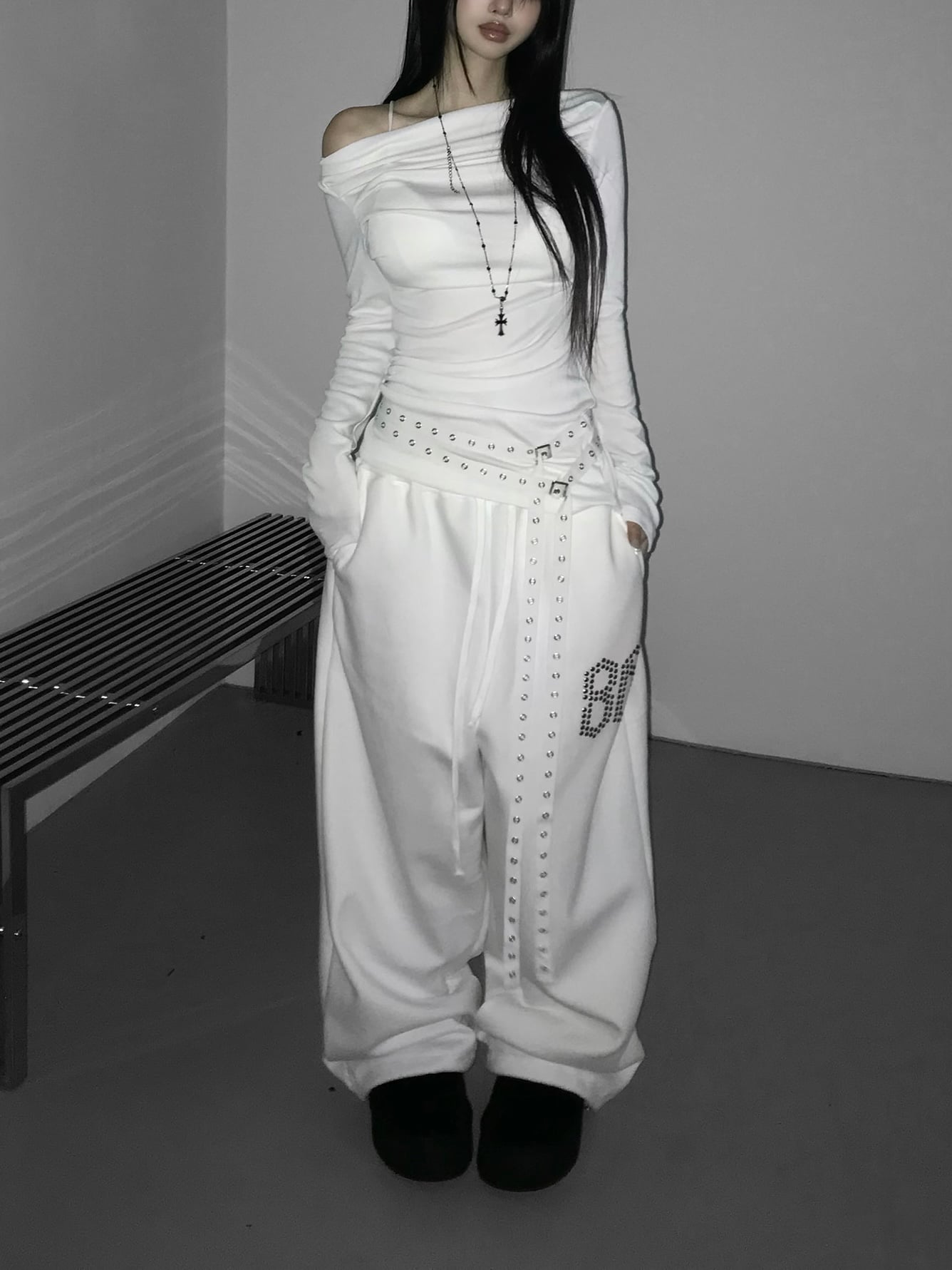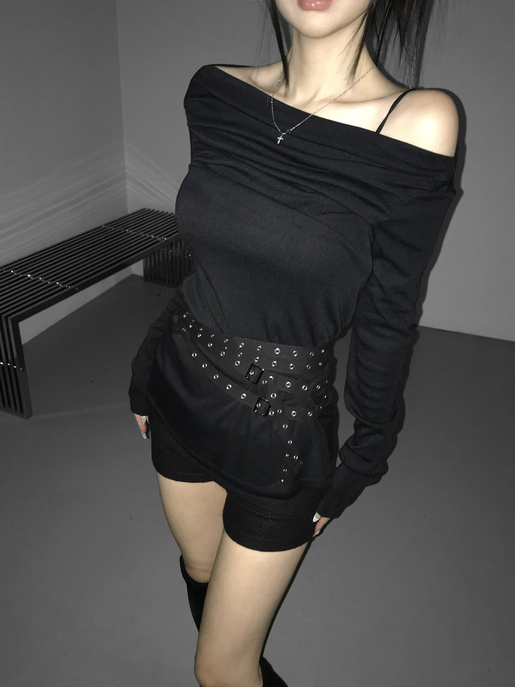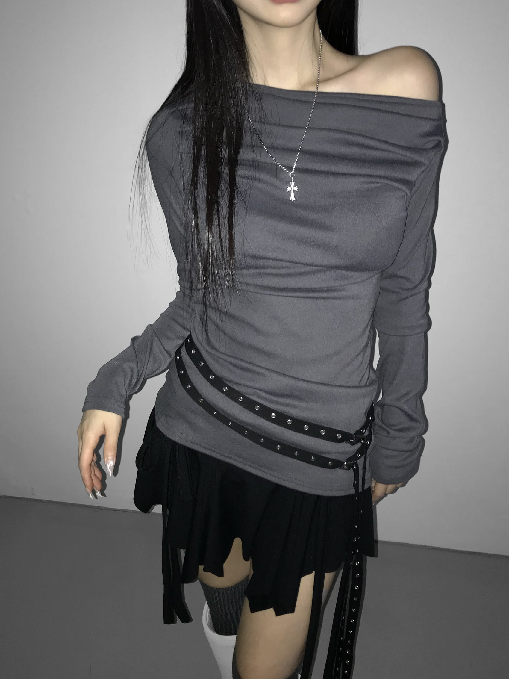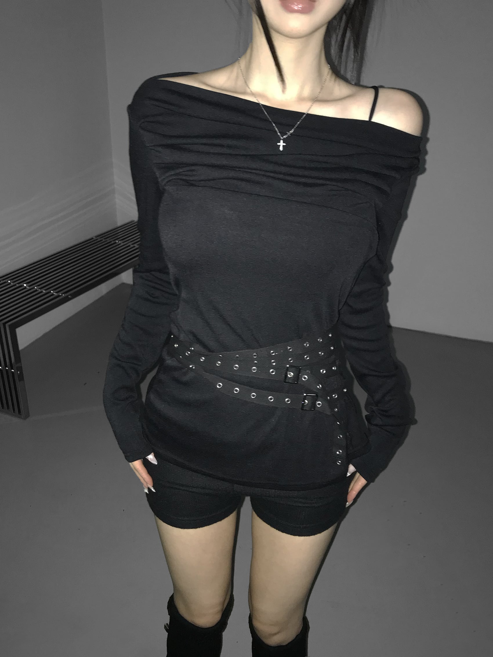 Shirred Draped Buckle Top